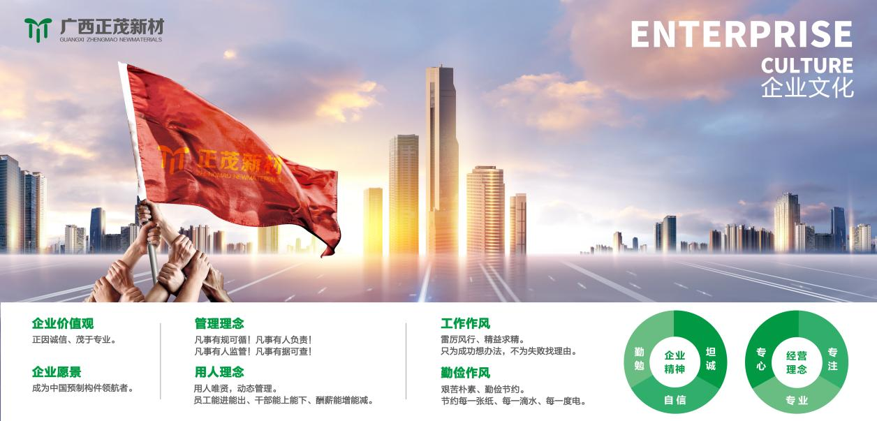 正茂集團是一家專業(yè)從事高端混凝土研制的高新技術(shù)企業(yè),創(chuàng)建于2007年,自主研發(fā)混凝土制品30余種,擁有國家級專利20余項,經(jīng)營范圍以新型環(huán)保建筑復合材料及裝配式建筑預制構(gòu)件為主體。2019年7月,正茂集團正式簽約入駐馬山縣蘇博工業(yè)園區(qū),投資建設以高鐵、地鐵、市政、電力、水利及裝配式建筑構(gòu)件等為主的生產(chǎn)線項目。...